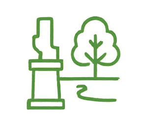Green corridors where native canopy trees, hanging planters and colourful understory planting thread through the road network, reducing heat and inviting biodiversity.